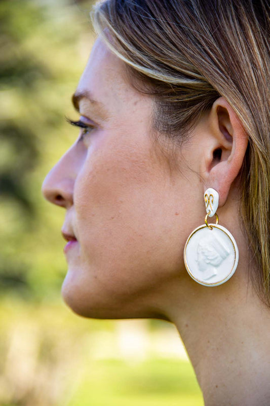 Weiß | CIBELES | Handgefertigte Camee Porzellan-Ohrringe