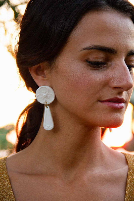 Weiß | ULISES | Handgefertigte große Ohrringe aus Porzellan