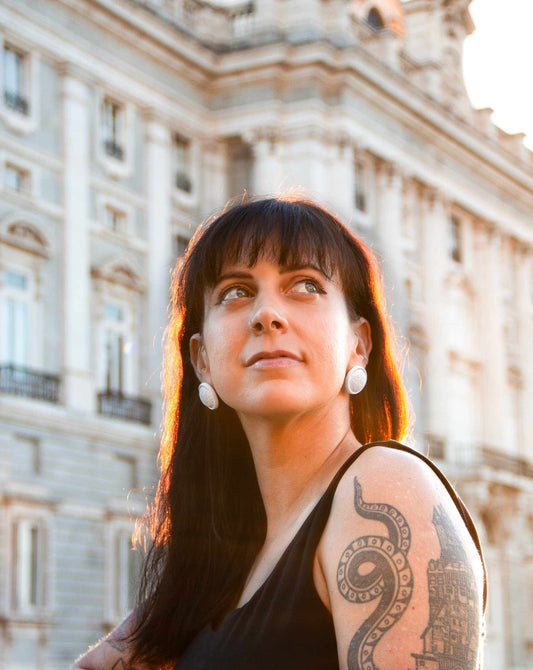 Target: {"id":8509253648733,"title":"Branco | MADRID | Brincos artesanais feitos à mão","handle":"branco-madrid-brincos-botao-artesanais-de-porcelana-feitos-a-mao","description":"\u003cmeta charset=\"utf-8\"\u003e\n\u003ch3 data-mce-fragment=\"1\"\u003eMaterial\u003c\/h3\u003e\n\u003cul data-mce-fragment=\"1\"\u003e\n\u003cli data-mce-fragment=\"1\"\u003e\u003cmeta charset=\"utf-8\"\u003ePura porcelana cerâmica branca de Jingdezhen\u003c\/li\u003e\n\u003c\/ul\u003e\n\u003ch3 data-mce-fragment=\"1\"\u003eFerragens\u003c\/h3\u003e\n\u003cul data-mce-fragment=\"1\"\u003e\n\u003cli data-mce-fragment=\"1\"\u003eAltamente hipoalergênica prateada\u003c\/li\u003e\n\u003cli data-mce-fragment=\"1\"\u003eVareta e porca de pressão traseira com disco ergonômico confortável\u003c\/li\u003e\n\u003c\/ul\u003e\n\u003ch3 data-mce-fragment=\"1\"\u003eMedidas\u003c\/h3\u003e\n\u003cul data-mce-fragment=\"1\"\u003e\n\u003cli data-mce-fragment=\"1\"\u003eDiâmetro: 2,8 cm\u003c\/li\u003e\n\u003cli data-mce-fragment=\"1\"\u003ePeso: aprox. 3\/6 gr\u003c\/li\u003e\n\u003c\/ul\u003e\n\u003ch3\u003eConheça sua joia\u003c\/h3\u003e\n\u003cp\u003eEssas peças artesanais são inspiradas no \u003cstrong\u003emedronheiro\u003c\/strong\u003e, \u003cstrong\u003eo símbolo de Madrid.\u003c\/strong\u003e Desde os tempos antigos, esta árvore tem sido \u003cstrong\u003eum\u003c\/strong\u003e \u003cstrong\u003eemblema de resiliência e força\u003c\/strong\u003e, conhecida por sua incrível capacidade de rebrotar mesmo após os incêndios mais devastadores. Suas folhas perenes e \u003cstrong\u003eo crescimento firme\u003c\/strong\u003e nos lembram que,\u003cstrong\u003e assim como na natureza\u003c\/strong\u003e, \u003cstrong\u003eperseverança e paciência sempre trazem recompensas\u003c\/strong\u003e. Além disso, o design desta joia reproduz a \u003cstrong\u003etextura tridimensional única\u003c\/strong\u003e dos frutos do medronheiro, criando um \u003cstrong\u003eimpressionante jogo de luz\u003c\/strong\u003e que destaca sua originalidade.\u003c\/p\u003e\n\u003cp\u003e\u003cstrong\u003eGaranta esta peça\u003c\/strong\u003e e deixe que seu caráter único faça você \u003cstrong\u003ebrilhar em qualquer ocasião\u003c\/strong\u003e.\u003c\/p\u003e\n\u003cp\u003e\u0026nbsp;\u003c\/p\u003e\n\u003cp\u003e\u003ciframe title=\"YouTube video player\" src=\"https:\/\/www.youtube.com\/embed\/ZhFN96kQe2o?feature=shared\" height=\"560\" width=\"315\" allowfullscreen=\"\" allow=\"accelerometer; autoplay; clipboard-write; encrypted-media; gyroscope; picture-in-picture; web-share\" frameborder=\"0\"\u003e\u003c\/iframe\u003e\u003c\/p\u003e\n\u003cul data-mce-fragment=\"1\"\u003e\u003c\/ul\u003e","published_at":"2023-10-23T18:30:02+02:00","created_at":"2023-07-20T16:59:43+02:00","vendor":"Balarmú","type":"Brinco","tags":["blanco"],"price":7800,"price_min":7800,"price_max":7800,"available":true,"price_varies":false,"compare_at_price":null,"compare_at_price_min":0,"compare_at_price_max":0,"compare_at_price_varies":false,"variants":[{"id":48069952143709,"title":"Default Title","option1":"Default Title","option2":null,"option3":null,"sku":"EAR-MAD-WHI","requires_shipping":true,"taxable":true,"featured_image":null,"available":true,"name":"Branco | MADRID | Brincos artesanais feitos à mão","public_title":null,"options":["Default Title"],"price":7800,"weight":0,"compare_at_price":null,"inventory_management":"shopify","barcode":"","requires_selling_plan":false,"selling_plan_allocations":[]}],"images":["\/\/www.balarmu.com\/cdn\/shop\/files\/Blanco_MADRID_pendientes_artesanales_1_Balarmu.jpg?v=1695824004","\/\/www.balarmu.com\/cdn\/shop\/files\/Blanco_MADRID_Pendientes_artesanales_originales.jpg?v=1696697128","\/\/www.balarmu.com\/cdn\/shop\/files\/Blanco_MADRID_pendientes_artesanales_2_Balarmu.jpg?v=1696678256","\/\/www.balarmu.com\/cdn\/shop\/files\/Blanco_MADRID_pendientes_artesanales_3_Balarmu.jpg?v=1696678256","\/\/www.balarmu.com\/cdn\/shop\/files\/Blanco_MADRID_pendientes_artesanales_4_Balarmu.jpg?v=1696678256","\/\/www.balarmu.com\/cdn\/shop\/files\/Blanco_MADRID_pendientes_artesanales_5_Balarmu.jpg?v=1696678256","\/\/www.balarmu.com\/cdn\/shop\/files\/Blanco_MADRID_pendientes_artesanales_6_Balarmu.jpg?v=1696696932","\/\/www.balarmu.com\/cdn\/shop\/files\/Blanco_MADRID_pendientes_artesanales_7_Balarmu.jpg?v=1696678256","\/\/www.balarmu.com\/cdn\/shop\/files\/Blanco_MADRID_Pendientes_artesanales_de_bot_n_madro_o_Balarmu.jpg?v=1718908568"],"featured_image":"\/\/www.balarmu.com\/cdn\/shop\/files\/Blanco_MADRID_pendientes_artesanales_1_Balarmu.jpg?v=1695824004","options":["Título"],"media":[{"alt":"Blanco | MADRID | pendientes artesanales 1 Balarmu","id":45187825041757,"position":1,"preview_image":{"aspect_ratio":0.667,"height":2048,"width":1365,"src":"\/\/www.balarmu.com\/cdn\/shop\/files\/Blanco_MADRID_pendientes_artesanales_1_Balarmu.jpg?v=1695824004"},"aspect_ratio":0.667,"height":2048,"media_type":"image","src":"\/\/www.balarmu.com\/cdn\/shop\/files\/Blanco_MADRID_pendientes_artesanales_1_Balarmu.jpg?v=1695824004","width":1365},{"alt":"Blanco | MADRID | Pendientes artesanales originales","id":45429970895197,"position":2,"preview_image":{"aspect_ratio":0.796,"height":1991,"width":1584,"src":"\/\/www.balarmu.com\/cdn\/shop\/files\/Blanco_MADRID_Pendientes_artesanales_originales.jpg?v=1696697128"},"aspect_ratio":0.796,"height":1991,"media_type":"image","src":"\/\/www.balarmu.com\/cdn\/shop\/files\/Blanco_MADRID_Pendientes_artesanales_originales.jpg?v=1696697128","width":1584},{"alt":"Blanco | MADRID | pendientes artesanales 2 Balarmu","id":45187838280029,"position":3,"preview_image":{"aspect_ratio":0.667,"height":2048,"width":1365,"src":"\/\/www.balarmu.com\/cdn\/shop\/files\/Blanco_MADRID_pendientes_artesanales_2_Balarmu.jpg?v=1696678256"},"aspect_ratio":0.667,"height":2048,"media_type":"image","src":"\/\/www.balarmu.com\/cdn\/shop\/files\/Blanco_MADRID_pendientes_artesanales_2_Balarmu.jpg?v=1696678256","width":1365},{"al